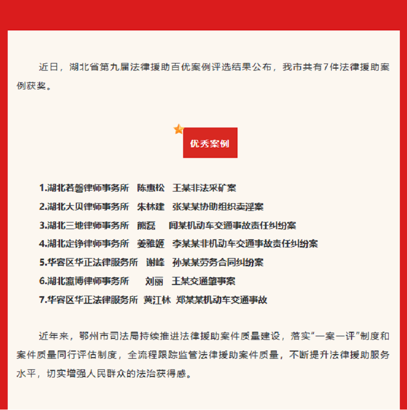 喜报!我市7件案例入选全省第九届法律援助百优案例