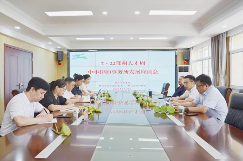 7月24日上午,由鄂州市司法局、鄂州市律师行业党委和鄂州市律师协会联合举办的“7·22鄂州人才周·中小律师事务所发展促进座谈会”在市司法局三楼会议室召开。来自鄂州首届人才周专家同济大学刑事法研究中心主任、法学院教授、博士生导师金泽刚教授和北京市忆达律师事务所高级合伙人陈锦龙律师应邀参加,并与鄂州律所主任代表围绕“破解中小律所发展困境,为落实花湖机场和武汉新城建设提供优质法律服务”开展深入交流。