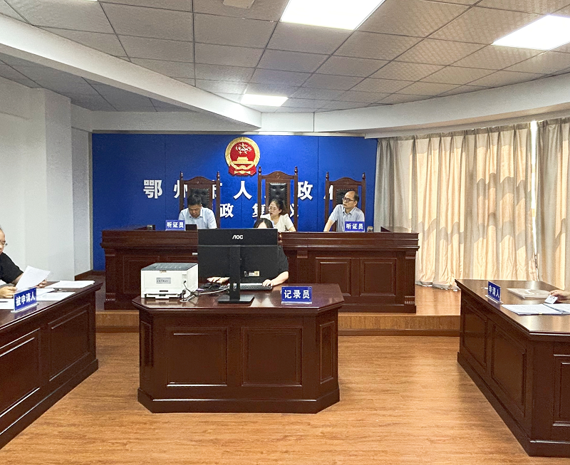 为切实保障市场主体合法权益、强化行政复议公正性专业性权威性,进一步优化法治化营商环境,8月2日,鄂州市司法局主动依职权就某企业不服城市管理领域行政处罚决定申请行政复议案召开听证会。听证会上,双方当事人就案件的事实证据、办案程序、裁量基准以及法律适用等方面进行了充分陈述、举证、质证和辩论。通过一个半小时的听证审理,复议机关充分听取了双方意见,全面深入了解了案情。双方当事人均明确表示愿意在法律允许的范围内通过调解和解方式化解涉案行政争议。