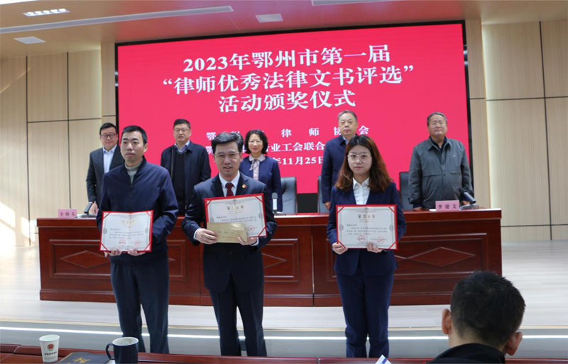 本次评选活动共收到53篇参赛法律文书。经初审,40篇作品进入终评。终评环节,由鄂州市法院、鄂州市检察院、鄂州市司法局、鄂州市总工会和黄石律协、黄冈律协、鄂州律协选派的专家评委按照评分标准对文书匿名打分,评出一等奖3篇、二等奖6篇、三等奖9篇,分别是刑事6篇、民事8篇、行政2篇,非诉2篇。