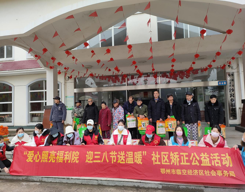 2024年3月6日上午,鄂州市临空经济区社会事务局组织辖区50岁以下女性社矫对象们来到沙窝福利院开展“爱心照亮福利院 迎三八节送温暖”公益活动,为福利院的老人们送去了温暖和关爱。