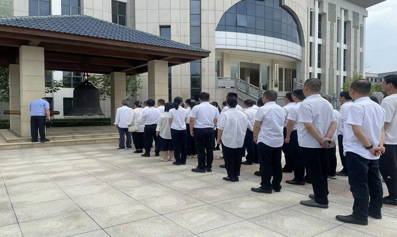 参观结束后,大家在廉政文化广场举行敲钟仪式,三声警钟响起,全体党员干部驻足肃立,入耳的警钟转化为内心对“廉”的敬重和对“贪”的戒惧。
