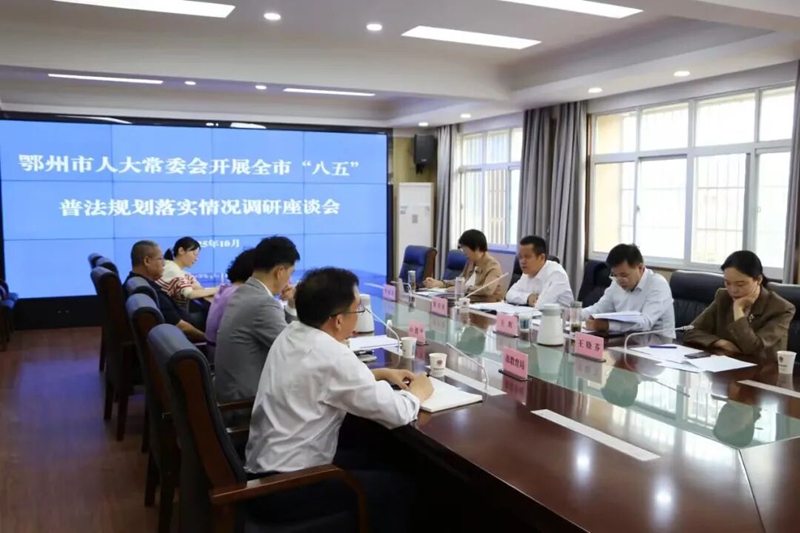 调研组实地察看了鄂州市公共法律服务平台和市司法局机关法治文化阵地,详细了解“八五”普法期间我市智慧普法平台和法治文化阵地打造情况。在随后召开的座谈会上,市司法局代表市人民政府汇报了全市“八五”普法规划落实进展。市检察院、市教育局作补充汇报,调研组成员围绕汇报内容提出了意见建议。