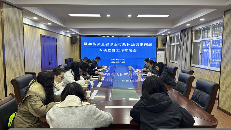 为深入贯彻落实全省涉企行政执法突出问题专项监督工作(以下简称专项监督),2026年2月6日,鄂州市召开专项监督工作部署会,各区司法局,葛店经开区城乡融合发展局、临空经济区办公室分管负责同志及相关工作负责同志参会。