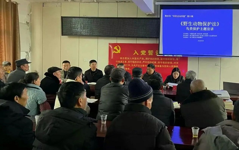 “今天咱们不讲大道理,就讲讲跟大伙儿生活息息相关的‘鸟事’——哪些鸟不能打、为啥不能打、打了会咋样,乡亲们有啥问题尽管问!”市林业局林业资源管理和保护科科长严劲松以《守护蓝天精灵 共筑生态鄂州》为题,用方言土语和身边案例,把枯燥的法律条文讲得活灵活现。