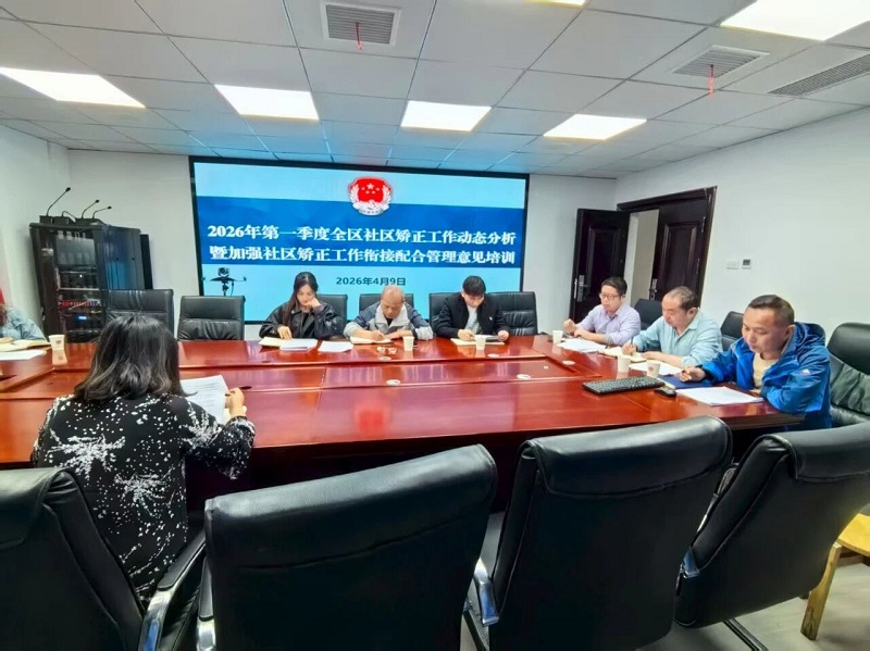 4月9日,梁子湖区司法局召开2026年第一季度社区矫正工作动态分析会。区司法局分管领导、各司法所所长及社区矫正工作人员参会。