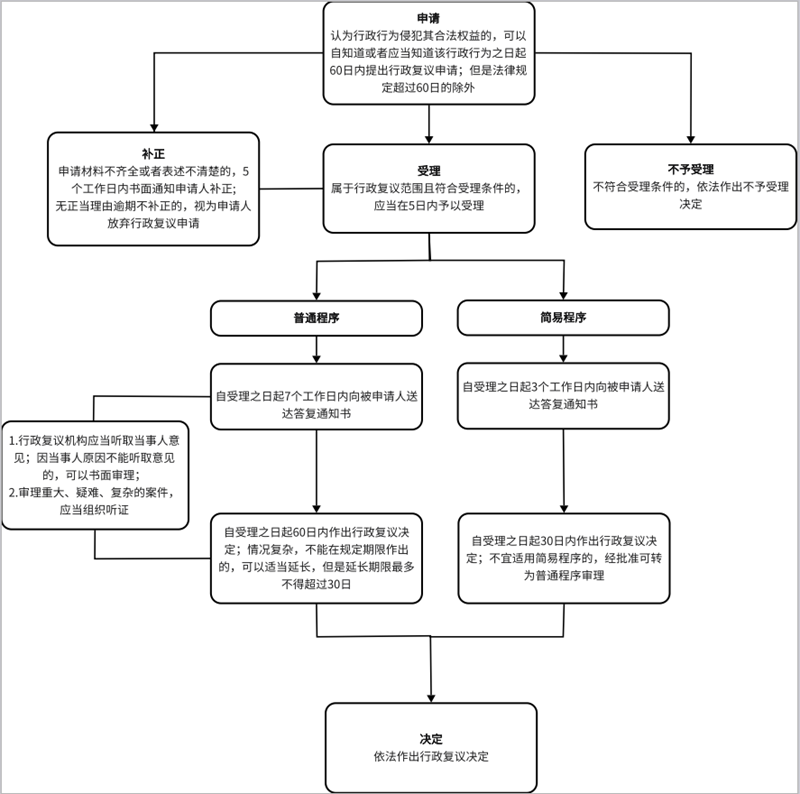 答:适用简易程序审理的行政复议案件,行政复议机关应当自受理申请之日起三十日内作出行政复议决定。适用普通程序审理的行政复议案件,行政复议机关应当自受理申请之日起六十日内作出行政复议决定。适用普通程序审理时,法律规定审理期限少于六十日的,依照法律规定。情况复杂的,经批准,最多可以延长三十日。